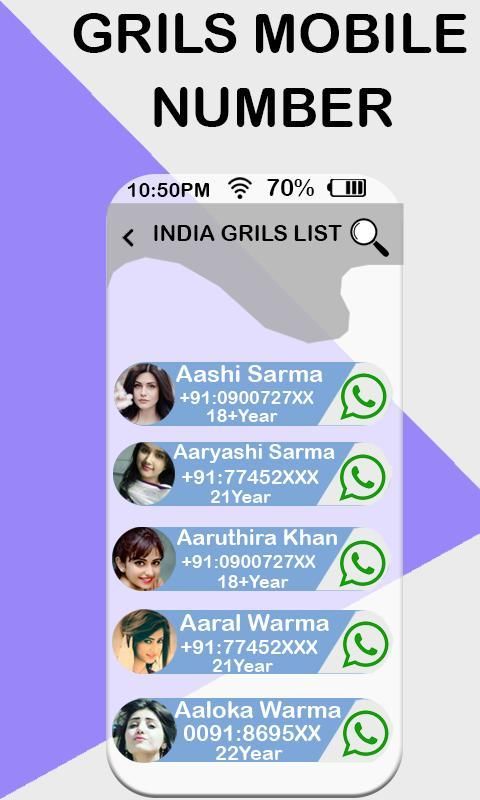 Hot Girls Mobile Numbers : Girls numbers for Chat is a free app for getting cute girls mobile numbers to chat or call them. Girls mobile number for free chat will help you find hot girls from different countries in the world and will let you text with them. Finding cute hot girls is very difficult to find but this app makes it easy to find the hot girls and start chat and if they make friendship then invite them for date and enjoy a company with sweet girls.
