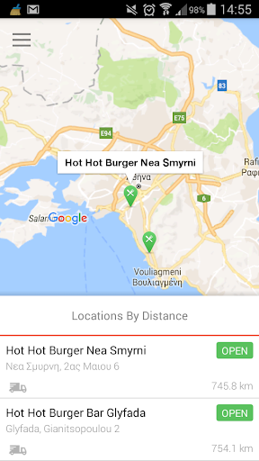 24 Hour Burger Bar with an American 50s & 60s Rock Atmosphere. Gourmet Burgers, Hot Dogs, Chicken Nuggets, Salads and many more.