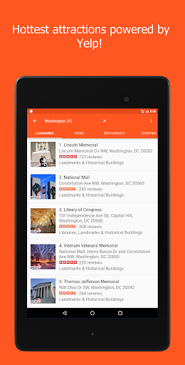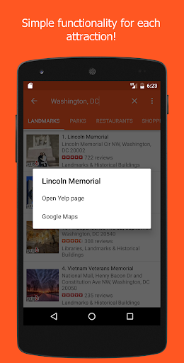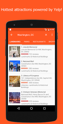 Find the hottest tourist attractions (landmarks, parks, shops, and etc.) at areas ranging from Washington, DC to Australia! Simply enter a location into the search query, and expect to see the best results powered by Yelp.