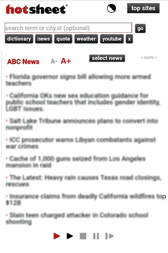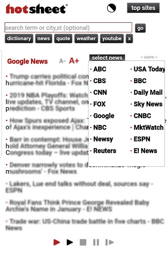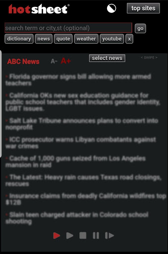 HotSheet provides the latest headlines from multiple news sources, unique super search function, and categorized single page directory of top news and information resources. Easy to browse headlines are sourced from multiple media outlets, with news, sports and entertainment news feeds instantly updated. Features US national and local news links, travel, finance and entertainment sites, and many other popular and useful resources.