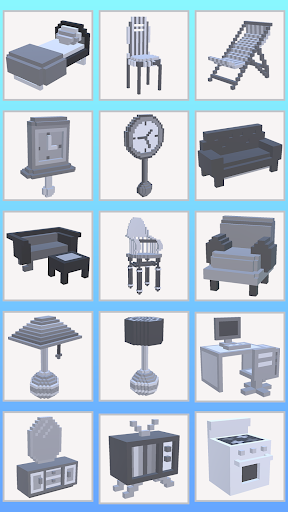 - Choose interior designs, items of furniture, and color all voxel models in glitters, solids, and crayons.