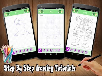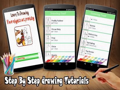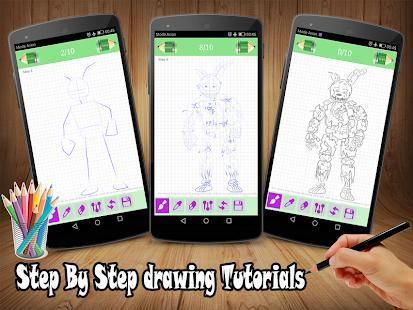 How To Draw FNAF app collected many easy drawing lessons for kids and adults to teach you how to draw Freddy Fazbear, and FNAF characters .