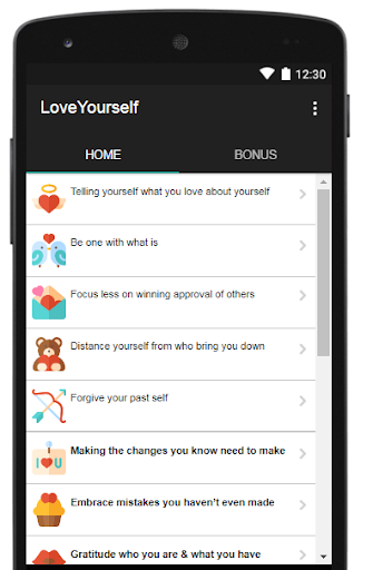 If you’re trying to learn to love yourself, build self-compassion by writing yourself a kind letter in an understanding tone from the perspective of someone who loves you unconditionally. Focus on self-love by making and keeping a list of things you like about yourself, or asking family and friends to come up with things you're good at. Try to catch yourself when you're thinking negative thoughts, check whether those thoughts are true, and change those thoughts to something positive.