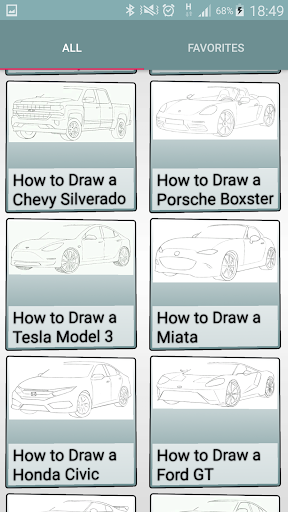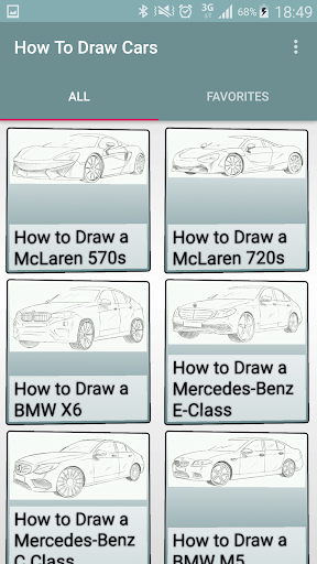 Learn how to draw cars and improve your skill drawing cars in no time with the help of our simple application. Whether you're an art teacher, art student, or just a hobbyist artist it does not matter you will find the step by step education drawing cars that will give you the ability to bring those images in your mind into paper reality.