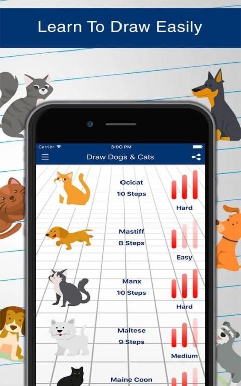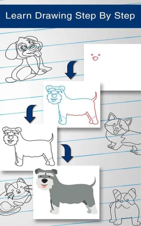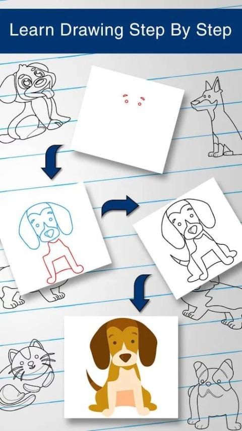 Learn How to Draw Dogs and Cats is an app that teaches you how to drawn Dogs and Cats pictures step by step.