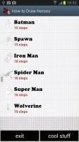 How to Draw Heroes teaches you through simple steps how to draw amazing and most famous heroes of comic books. You will find: - Spider Man - Spawn - Super Man - Wolverine - Iron Man - Batman
