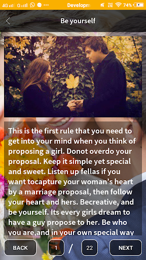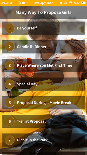 How to propose a girl app is developed for the college guys and single person who have not any girl friend.this app provide you a tips and sms for how to propose the girls