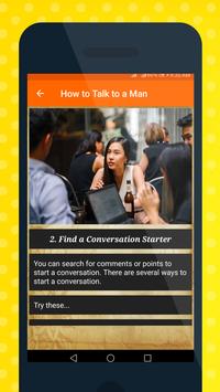 Talking to men may seem like a daunting task to some. Many women say that men make converstions difficult and claim they do not know how to talk to men. A common misperception about talking to men is that they never have anything to say. Women often claim to find the conversation of men to be simple, boring, and sometimes, just plain juvenile.