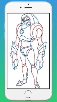 How to draw Ben Ten Alians character ??? This application is intended for fans of the character of Ben Ten Alians. Follow the step-by-step instructions and find a fun drawing experience.