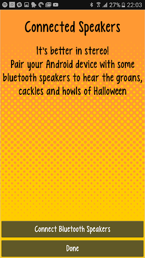 Once you hit play, the app "listens" to the music. Whenever it detects a change in songs, or a lull in the music, it fills the gap with one of over 40 Halloween-themed sounds, from a witch's laugh to evil laughter, torture sounds and screams, wolves, vampires and more.