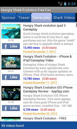 Shark time everyone!!For all the Hungry Shark Evolution fans out there, we have created the ultimate fan app with Hungry Shark Evolution Fan App. check out some fun underwater videos of this popular mobile game and watch some great Hungry Shark Evolution game play. track all the latest tweets that involve Hungry Shark Evolution and even chat with other fan app users. Hungry Shark Evolution is one of the best mobile games out there right now on google Play so help celebrate this by joining together with other fans on this amazing fan app.