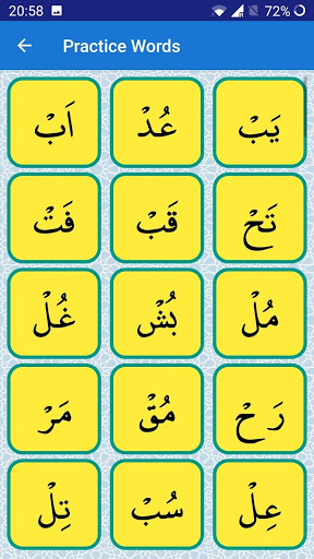 3) Practice Words - 120 words with pronunciation to help achieve the goal towards reciting of quran.