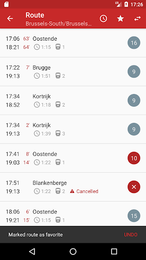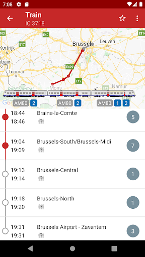 Plan a route between any two Belgian stations, quickly compare multiple possibilities, and get all the information you need from a single screen. If you need more information, just click on the transfer or train you need information about.