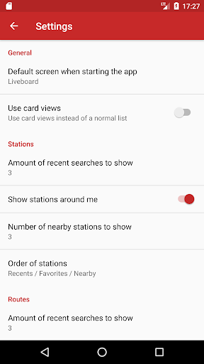 - Coarse position: To locate nearby stations. This function can be disabled in the application. Only your last known location is queried, meaning your battery isn't drained.