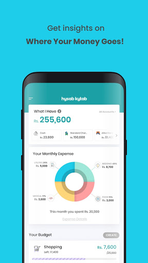Hysab Kytab is a multi-dimensional app that covers all areas of personal finance management. You can track your expenses, set budgets, set saving goals and view reports of your financial activities with just few taps. It provides you 360-degree view of your financial activities which lays groundwork for sound financial decision making as it provides you analytics to understand spending pattern, money behavior etc.