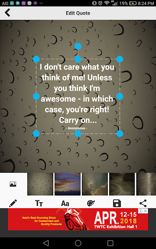 - You can edit your image quotes as you want (change font, background image, text size, etc.)