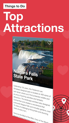 Explore New York State with the FREE official I Love NY app. Thousands of attractions, events, hotels, campgrounds, parks, restaurants, wineries, breweries, and more are just a few taps away. From stunning nature to world-class museums, and from the bright lights of Broadway to the rushing waters of Niagara Falls, there's something for everyone to love. Let's go!