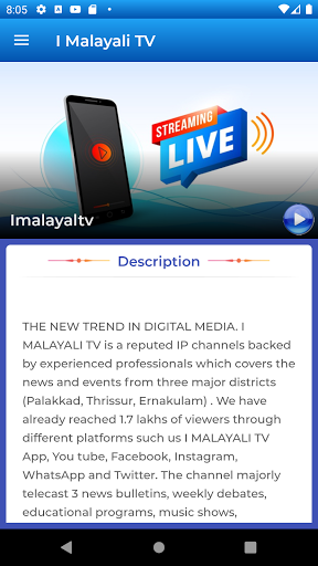 I Malayali TV a dedicated 24/7 Online Television Channel in Malayalam founded by founded by Blue eyes media lab . Kalmandapam, Palakkad. A great value entertainment media exclusively showcase the life and various facets of malayali expats in Kerala