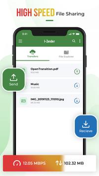 I-ZENDER is allow to send and receive file using hotsport without internet connection. Sharing all items using zender with your friends. I-Xender transfer file speed is very high and share movie fast.app is allow to connect with ip and hosport for transfer files and all items.