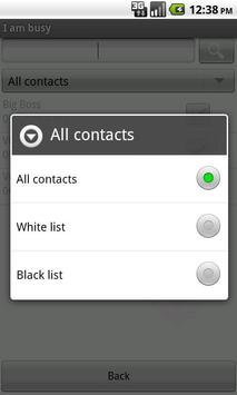 After pressing the button "Contact List" displays a list of contacts. Setting the checkmark contact will block the call from the person. If you remove the checkmark, the calls from the person will be available. You can also use the quick filters "White List" and the "Black List".