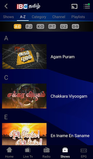 IBC Tamil app has different features - Live TV, Catch-up TV, Movies, TV Shows, News, Short films, Web series, Music Videos Kids series and religious shows.