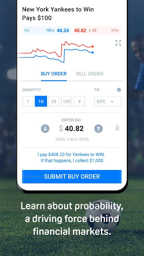 Each player will start with $1,000 virtual dollars to trade. Just like with trading stocks, participants will buy or sell bets on sports events by placing bids or offers. Each winning bet will pay off $100. Learn about probability, a driving force behind financial markets. Bids and offers will range from $0.05 to $99.95, reflecting the players estimate of the percentage probability of outcomes.