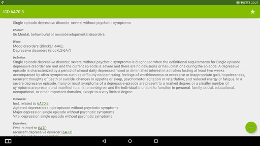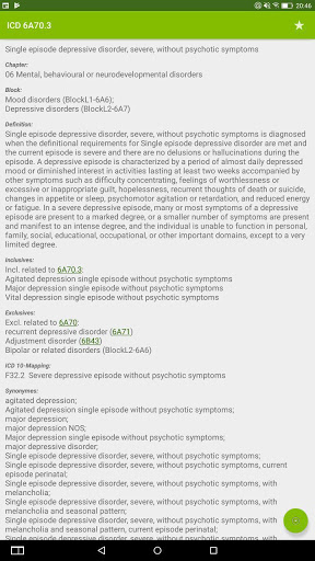 The new ICD-11 classification released by the WHO in May 2019, entirely wrapped up in this offline app. No ads, no permissions needed.