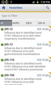 The 2011 I codes are instantly searchable and also browsable by their traditional categories. Search by code or description, through the whole ICD10,ICD9 & HCPCS or through just a category or selected nonspecific code. Images within the list indicate whether a code is specific or nonspecific. Tap to view the diagnosis and the full text of its standard description and to add it to your Favorites list for immediate access later.