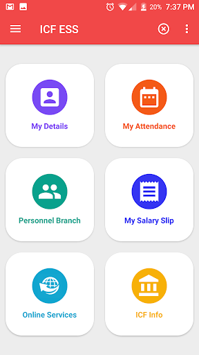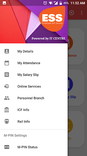 ICF ESS app is one of its kind . It allows the employee of Integral Coach Factory to access their details . Employee can access their Personnel details , Salary slip, Attendance , Leave particular and other welfare information. This App is only for Employee of Integral Coach Factory.