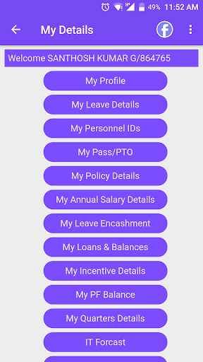 2. My Details ( Incentive details,Personnel ID,Leave Encashment Details,Quarters Details)