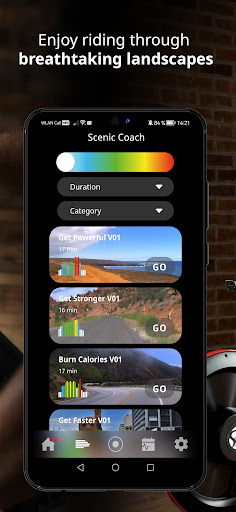 • Select workouts by fitness goal or sport activity