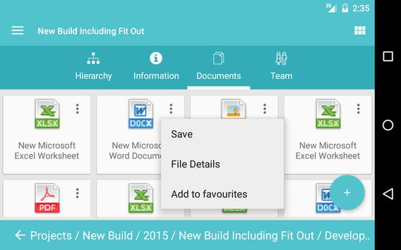 • Add equipment, general items, documents and entire projects to favourites for easy access