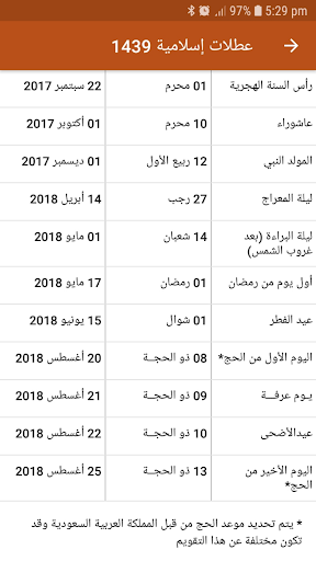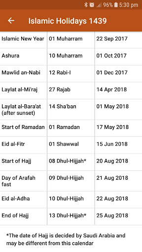 • Islamic Holidays and Events will appear on the relevant Hijri date as reminders