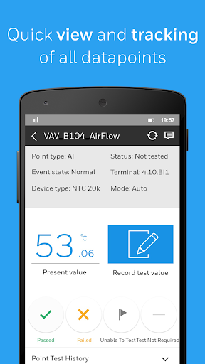 Honeywell ComfortPoint™Open(CPO) ICS App provides a smart and easy way to perform installation, commissioning and servicing activities at a site. It connects seamlessly with BACnet controllers and allows users to command field devices. It provides features that are intuitive to perform wiring checkout, point checkout and functional checkout tests and record the test results. Users can sync the recorded test results with CPO Studio and generate reports. This is one of the key features that makes it unique. It also provides a project level overview that shows test completion status.