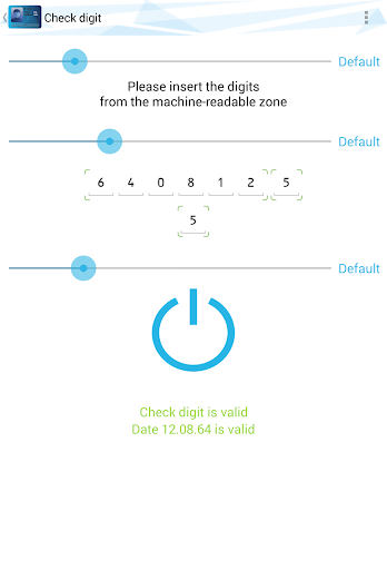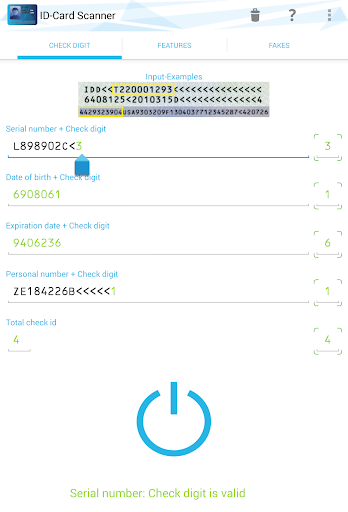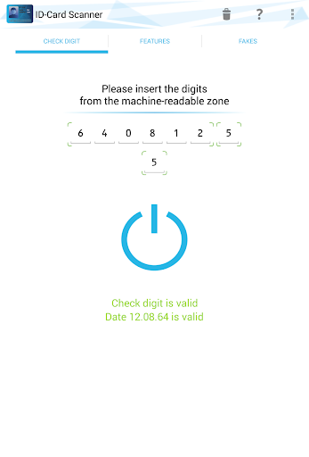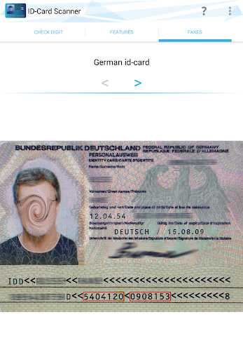In the pro-version you can check the completely machine-readable zone (such as serial number, date of birth, expiration date, personal number and total check id) on its correctness. In the settings you can find a demo.