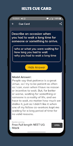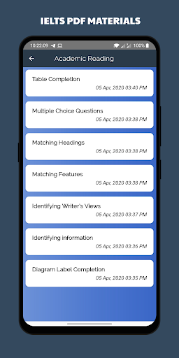 -Latest IELTS Exam Material will update regularly and will user get notification for same activity.