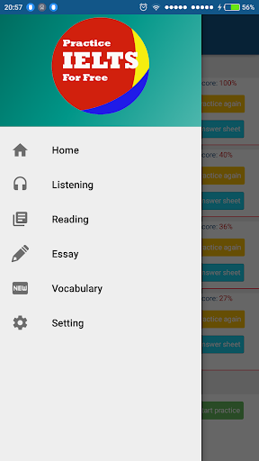 This app free for practice IELTS skills: Listening, Reading, Writing and speaking and also to learn vocabulary, essay sample.