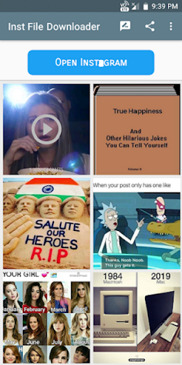 super app, easy to download instagram omages videos. we can share downloaded images or videos. works in offline. easy to share files.