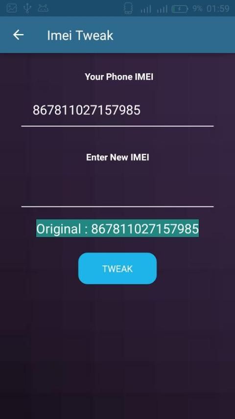 IMEI TWEAK Helps to change or recover IMEI number (for instance if your sim card doesn't work on your phone, your IMEI could be blocked or blacklisted).