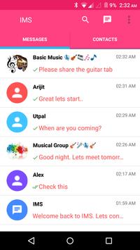 IMS Messenger is a messaging app available for Android . IMS uses your phone's Internet connection (4G/3G/2G/EDGE or Wi-Fi, as available) to let you message friends and family.