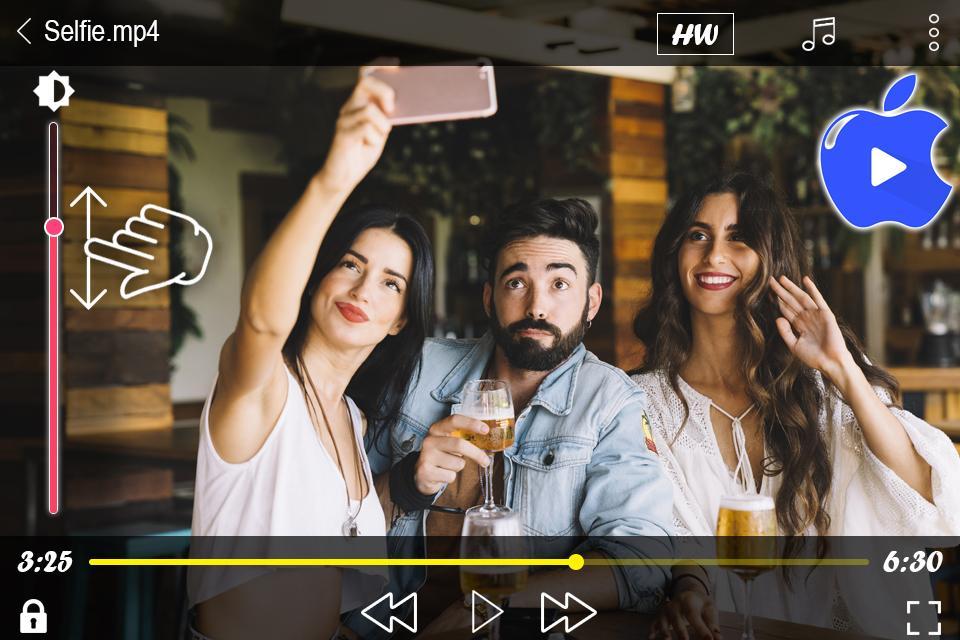 - Swipe control for volume,brightness & seeking