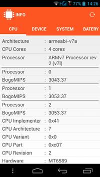 Processor,Cores ,Clock Speed,Current Frequency,Heap memory,Boot loader,Instruction set,CPU Governor Baseband Version, Kernel Version,ID,Host, GPU, Vendor ID, CPU family,Model Name.