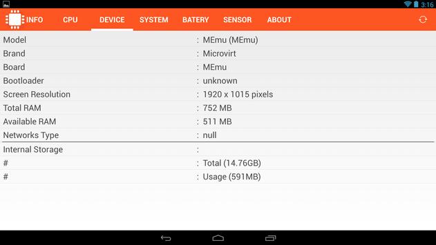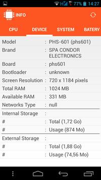 DEVICE (model, brand, board, screen resolution, ram, network type, etc. )