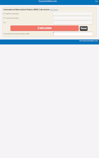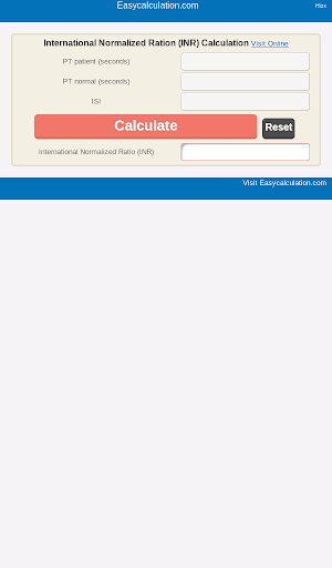 INR Calculator : International Normalized Ratio Calculation for reporting blood coagulation test results.