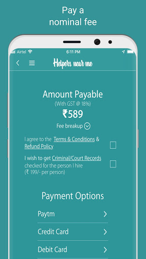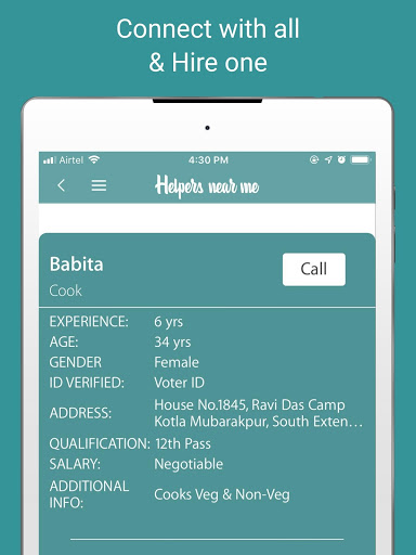 Find & Hire Domestic Workers, Drivers, School Workers, Restaurant Workers, Salon Workers, Office Workers, Factory Workers, Store Workers, Hospital Workers, Construction Workers & many more | No middlemen in between - No Agencies, No Agents, No Contractors & No Commissions | Convenient & Organized | Quick - 5 minutes & 5 easy steps | Professionally Verified Workers - ID & Criminal/Court Records pre-checked in detail | Connect with multiple nearby Workers | At a nominal fee of less than ₹500/- only | Find the best from a vast pool of Workers | Safe & Secure Payment | Customer-friendly Refund Policy