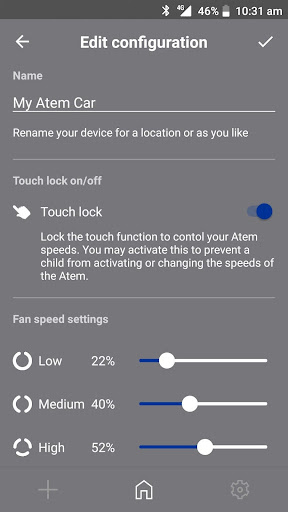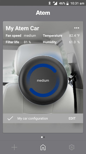 The IQAir Atem app adds functionality and convenience to your IQAir Atem Car & Desk. The app functions as a remote control that allows you to turn the air purifier on and off and select the desired level of airflow. The IQAir Atem app also allows you to customize the airflow, light settings and audio feedback. The app tracks filter life and notifies you when it’s time to change. The Atem Car features a touch control option to prevent unwanted passenger use. The Atem Desk features a Smart On/Off function that turns the air purifier on when you and your Bluetooth enabled smartphone are in reach.