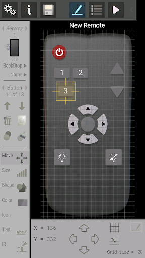 Create your own InfraRed remote by positioning buttons and assigning IR codes to them with this App.