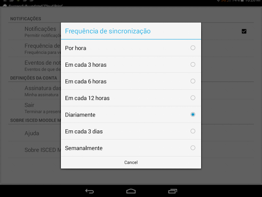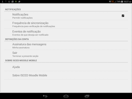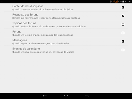 • Configure of the events to be notified (calendar events, new contents in the disciplines, ...).