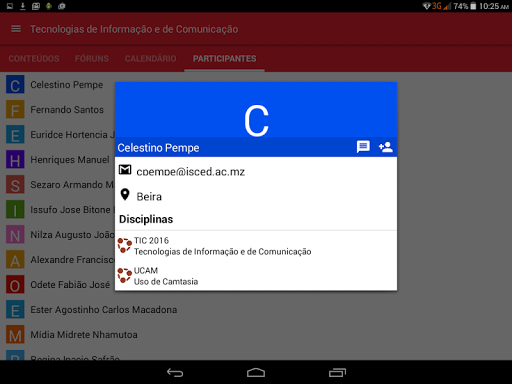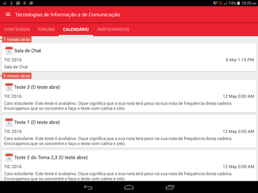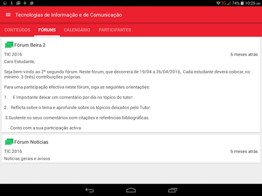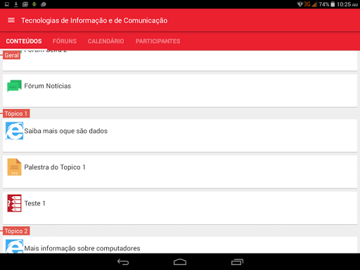 • Visualization of curricular content (tests, forums, forum topics, calendar ...), online or offline;