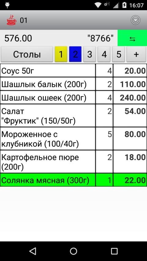 Appendix waiter platform ITKafe. It allows you to create and modify the waiter orders, count them, add notes to the dishes. It also allows the cook to see all the current orders for the manufacture of the notes and taken to mark the work and make the orders.